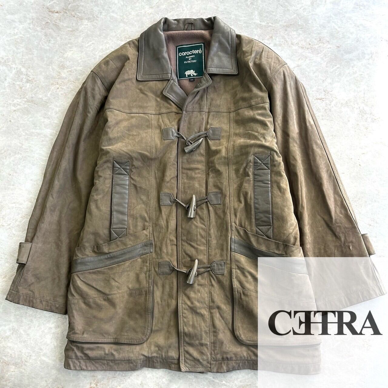 〖vintage〗Lambleather×cowleather switch design duffel coat