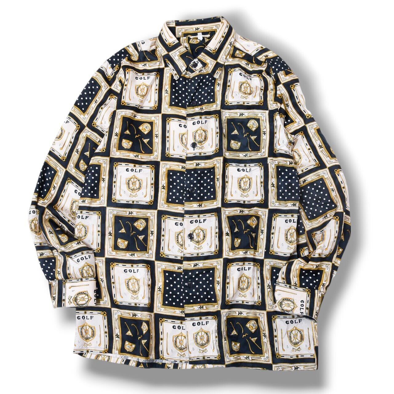〖vintage〗retoro golf baroque dot pattern design shirt