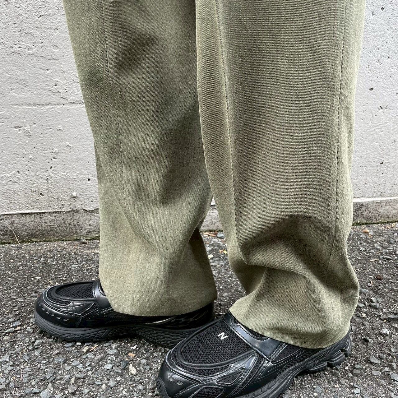 ダブルプリーツが生む立体感とゆとりのあるやや太めのシルエットが特徴です。