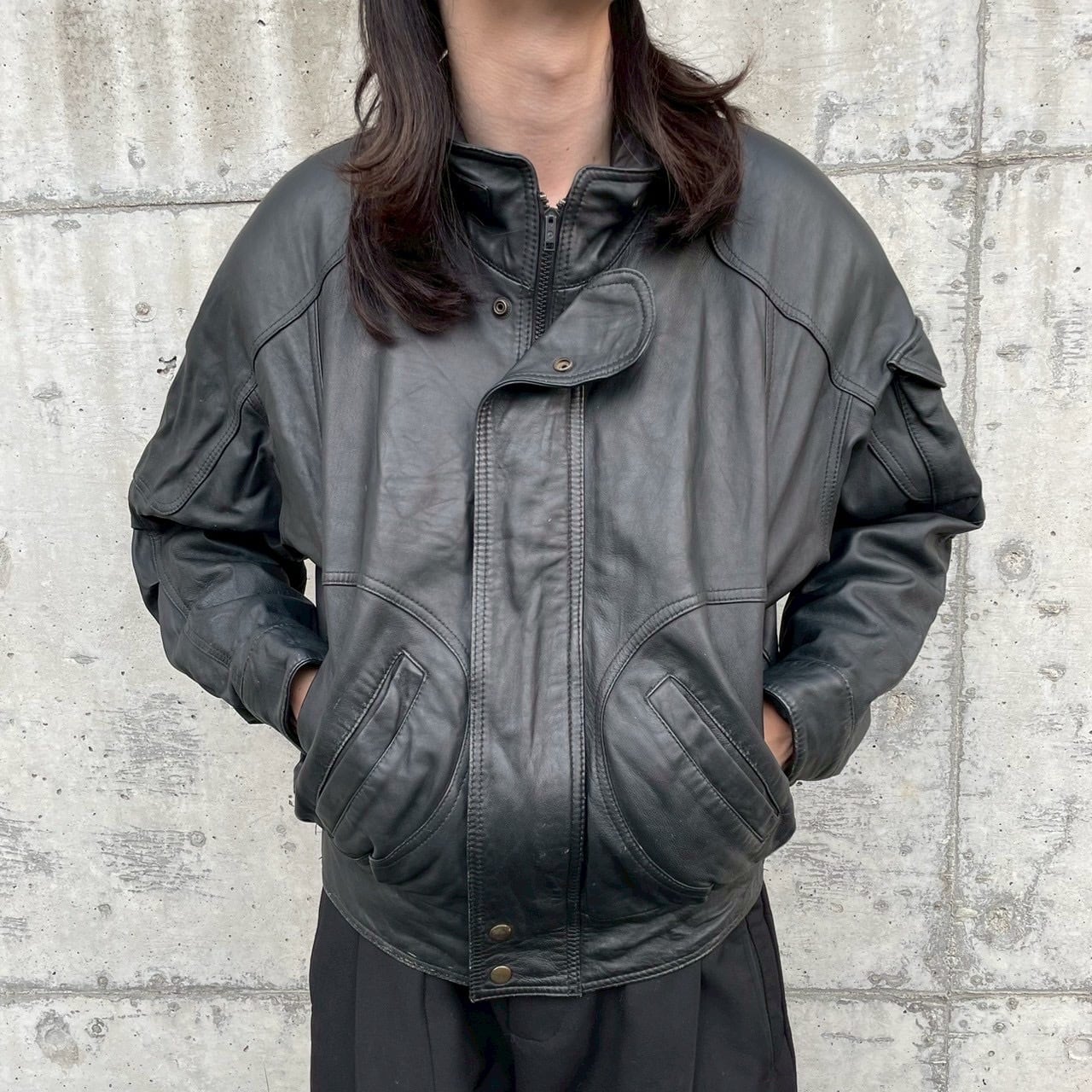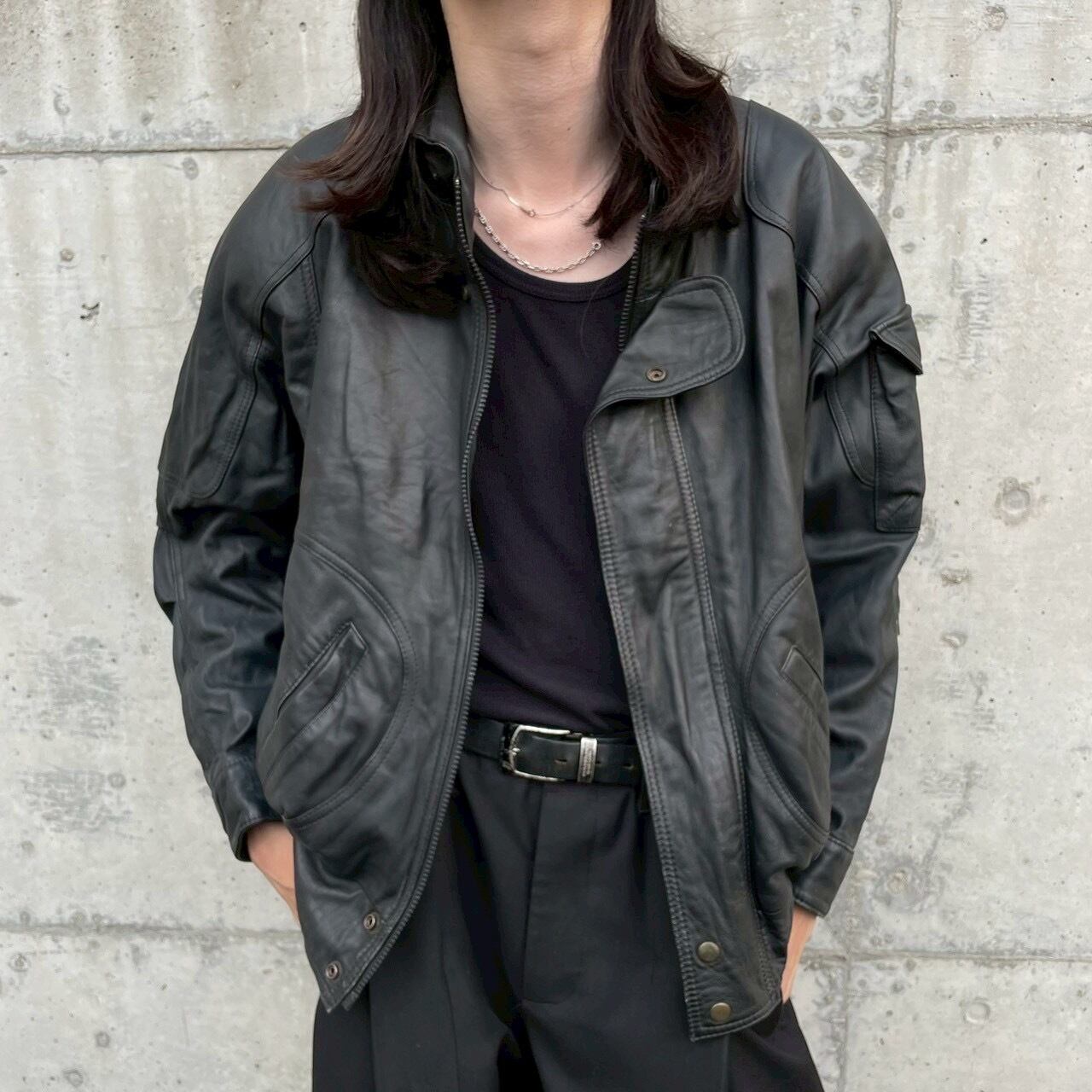 『vintage』Sheepskin Leather Bomber Jacket