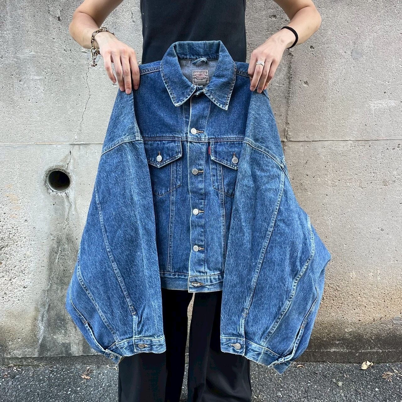 独特のパターンワークとワイドスリーブが生み出すボリューム感が特徴で、既製品にはない一点物の存在感を放ちます。ヴィンテージデニム特有の風合いと色落ちを活かしつつ、現代的なシルエットに仕上げられており、モードからストリートまで幅広いスタイルに対応可能。羽織るだけでスタイリングの主役になる一着です。