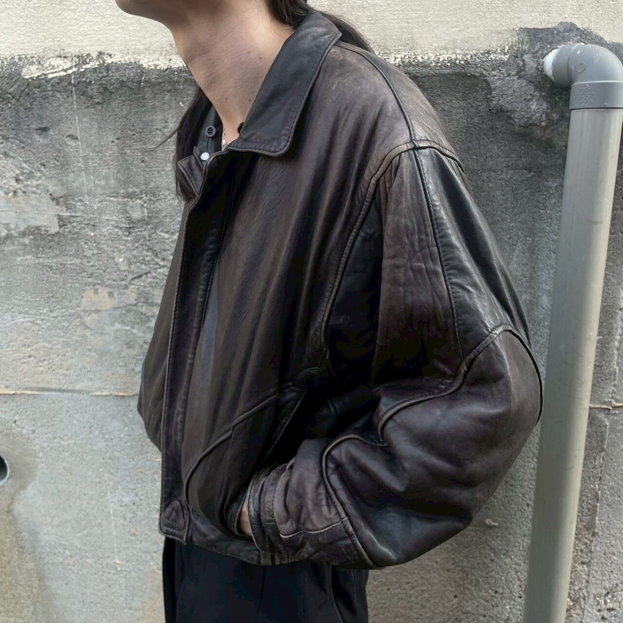 〖vintage〗Sheepskin Leather Bomber Jacket
