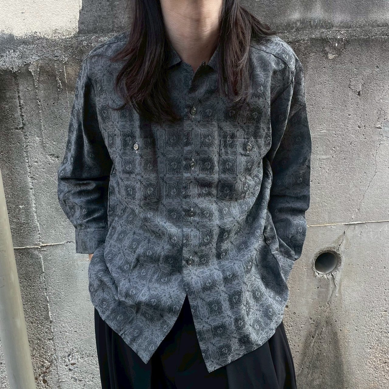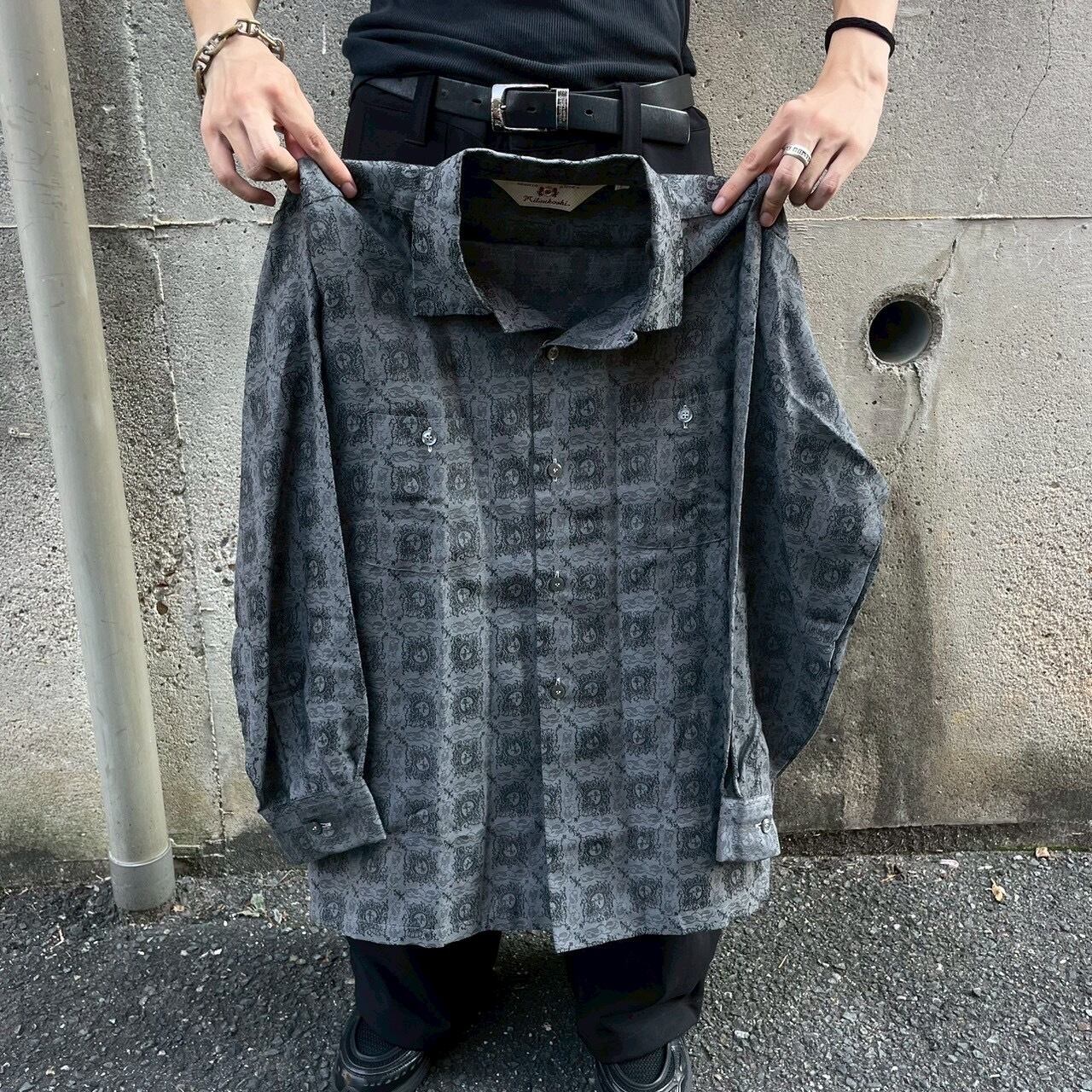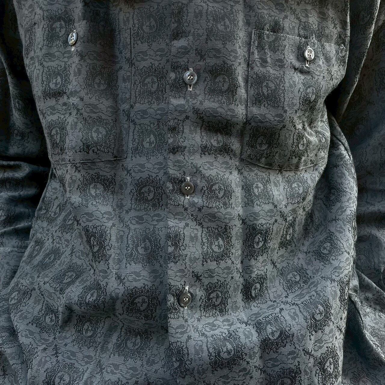 グレーベースに施された細やかなジャカード織りのパターンが特徴的なレトロシャツ。