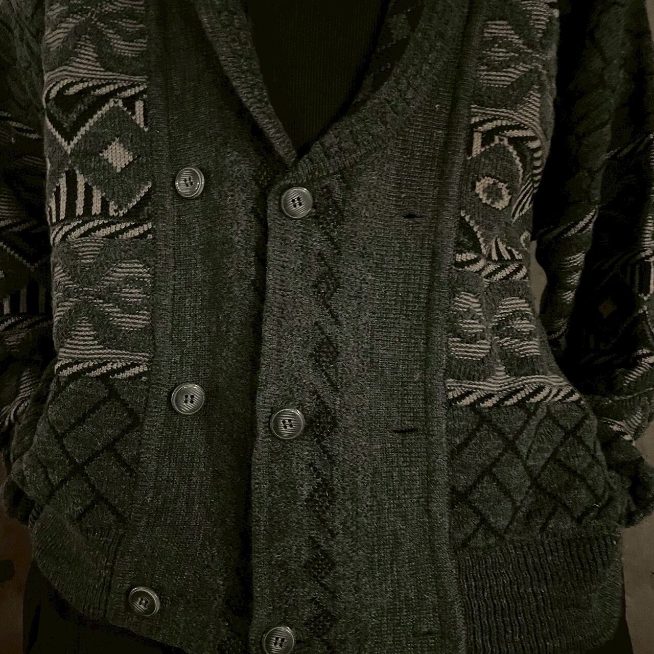 ヴィンテージウールのダブルブレストカーディガン。