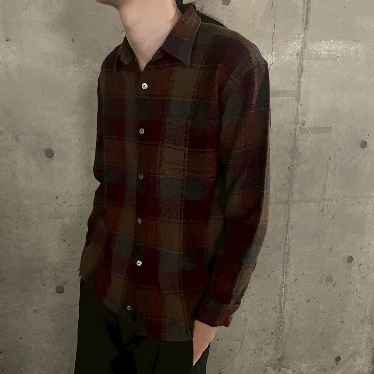 深みのあるブラウン、ボルドー、チャコールを基調とした、ウールオンブレチェックシャツ。