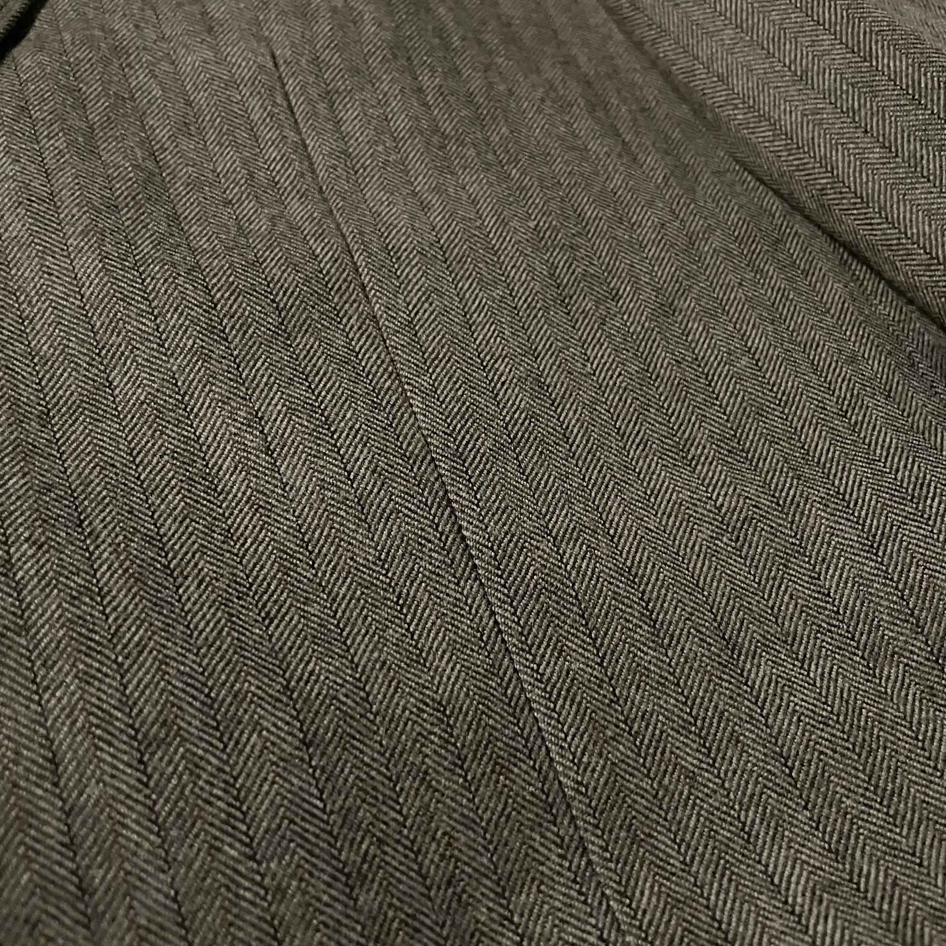 クラシックなヘリンボーン織りが控えめな陰影を生み、上品で知的な印象を与えます。