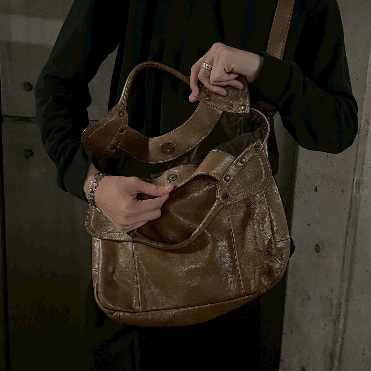 〖vintage〗Studs Design 2way Leather Bag