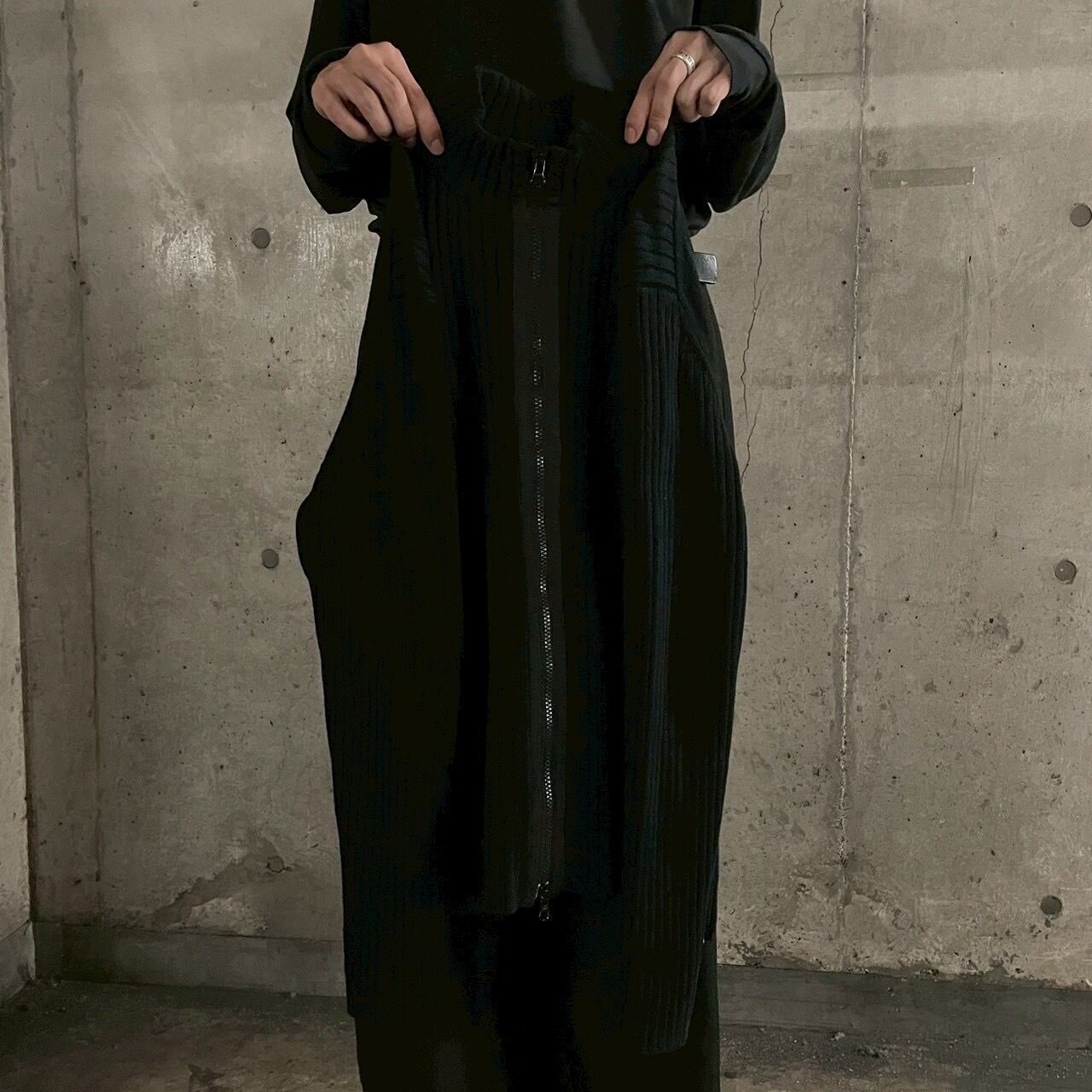 重厚感のあるリブ編みと、フロントを縁取るようなナイロン切り替えが印象的。