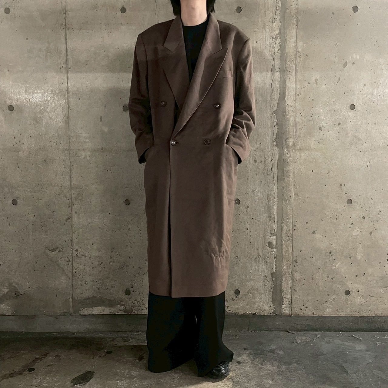 1990年代製、カシミヤ混の上質な風合いを持つマキシ丈チェスターコート。