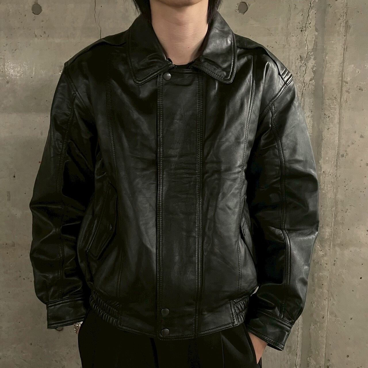 1990年代製、上質な**羊革(シープスキン)**を使用したブラックレザーブルゾン。