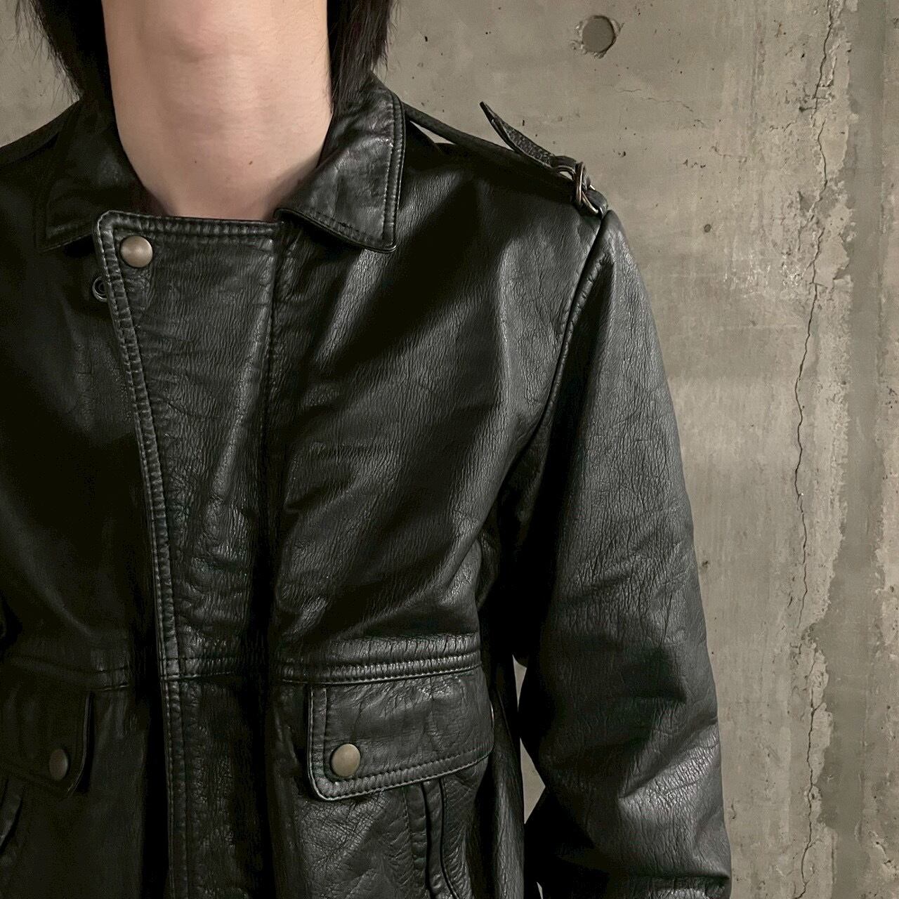 程よいボリュームと短めの着丈が、現代的なバランスで再評価される90sレザー特有のシルエットを形成しています。