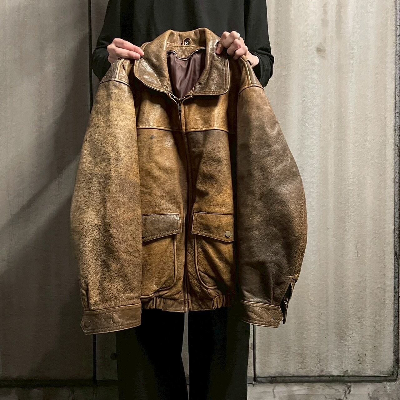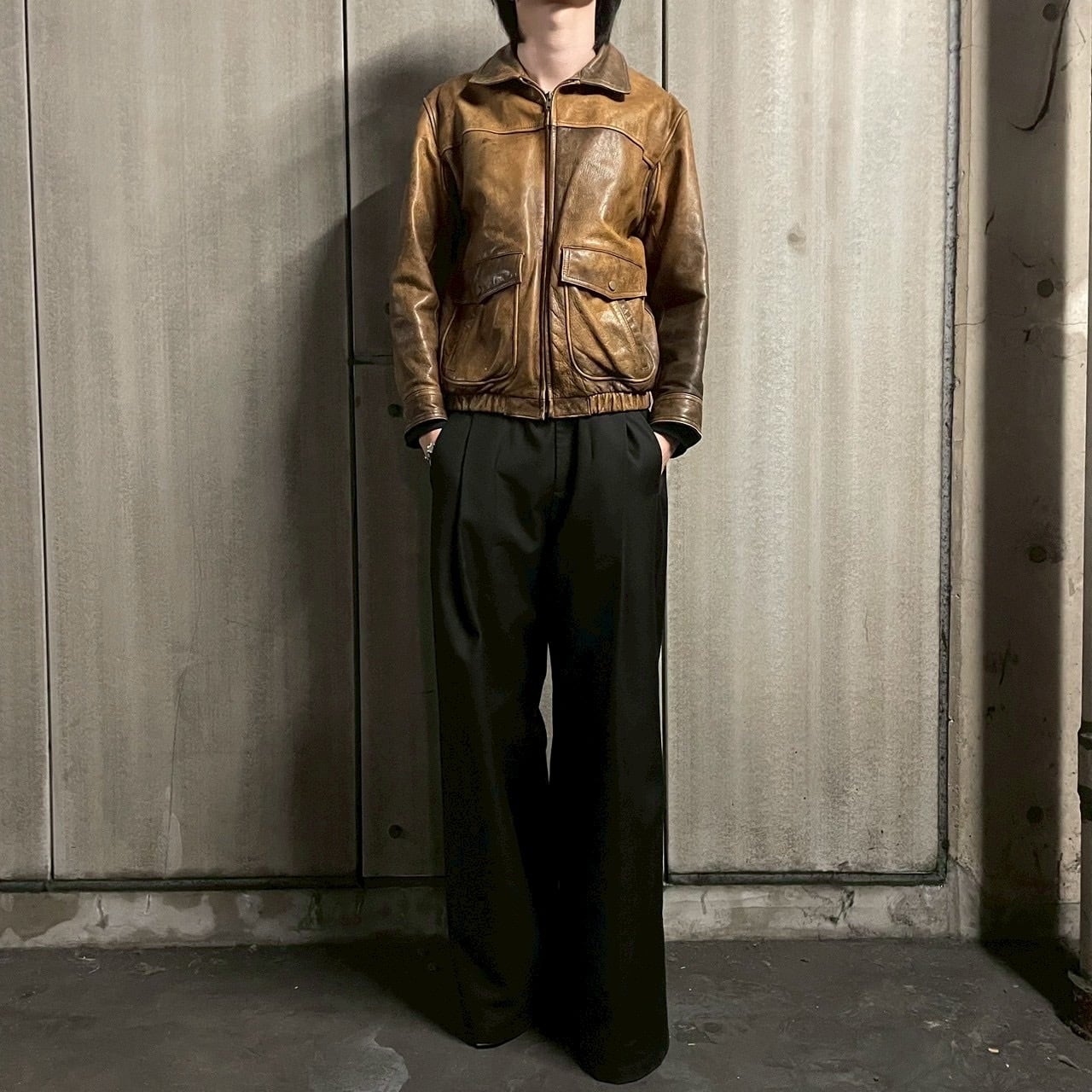 フラップポケットや比翼寄りの前立てなど、A-2 本来の無骨なミリタリーデザインを踏襲しつつ、90sらしいやや丸みを帯びたシルエットが現代のスタイルにもフィット。裾のゴム仕様が程よくまとまり、レザー特有の重厚感を抑えた着用感も魅力です。