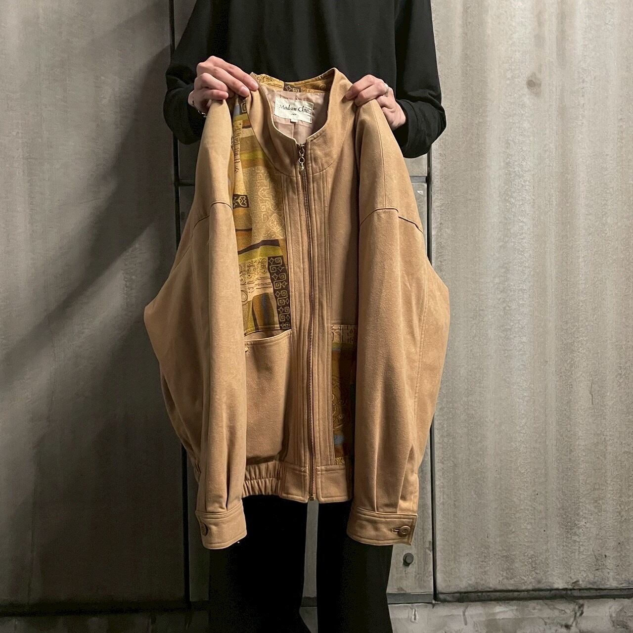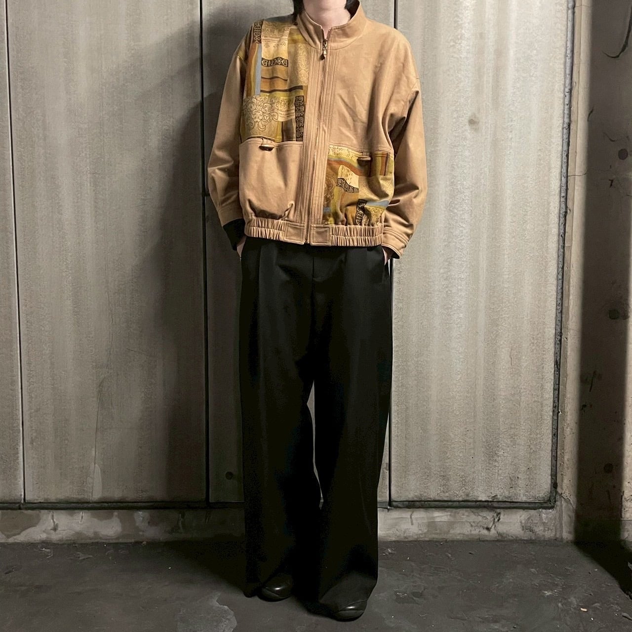 〖vintage〗90s Pattern Panel Faux Suede Harrington Jacket