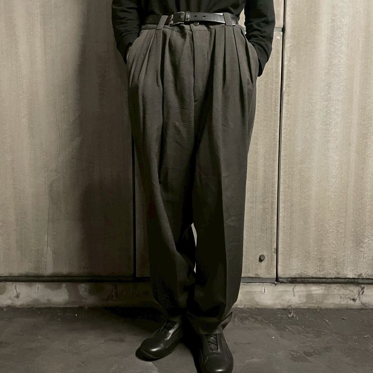 パンツはフロントに贅沢な4タックを施し、深い股上とワイドに落ちるラインがクラシックとモードを横断する一本に仕上がっています。