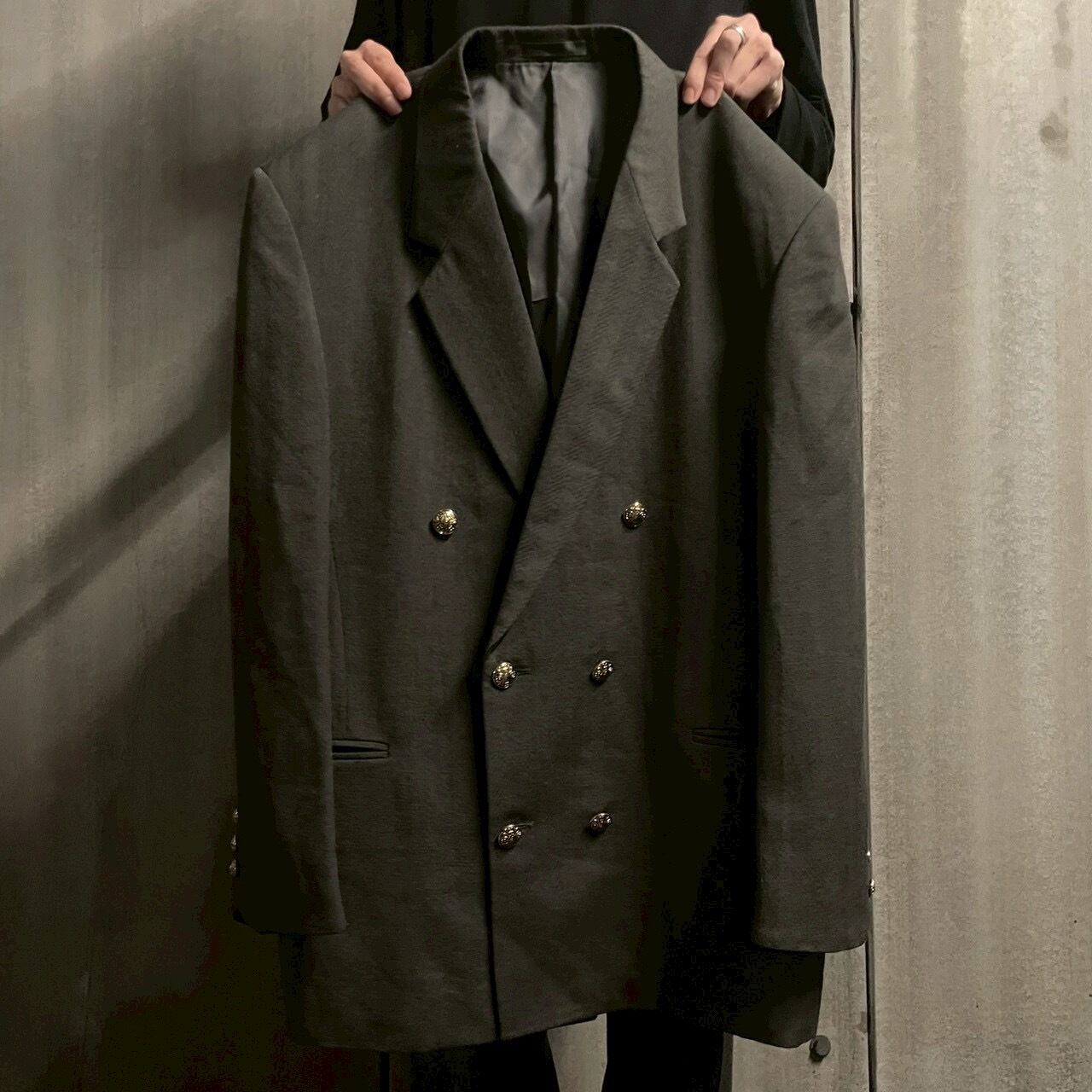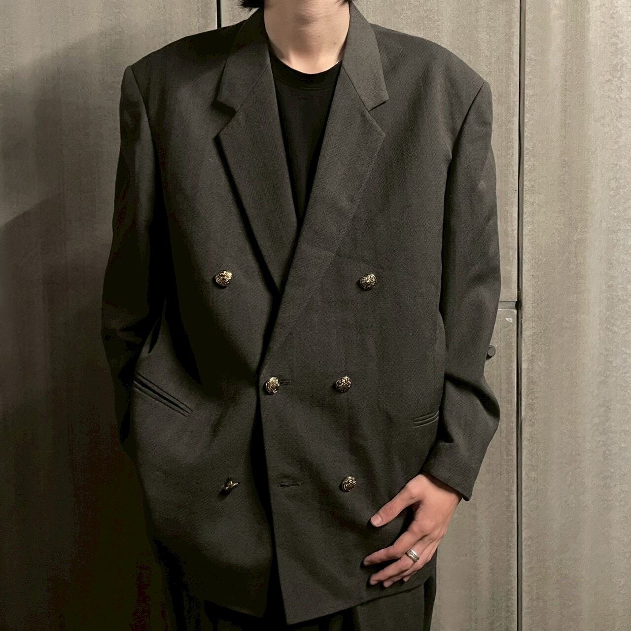 〖Vintage〗 3B Double-Breasted Set up Gold Buttons & 4-Tuck Wide Trousers