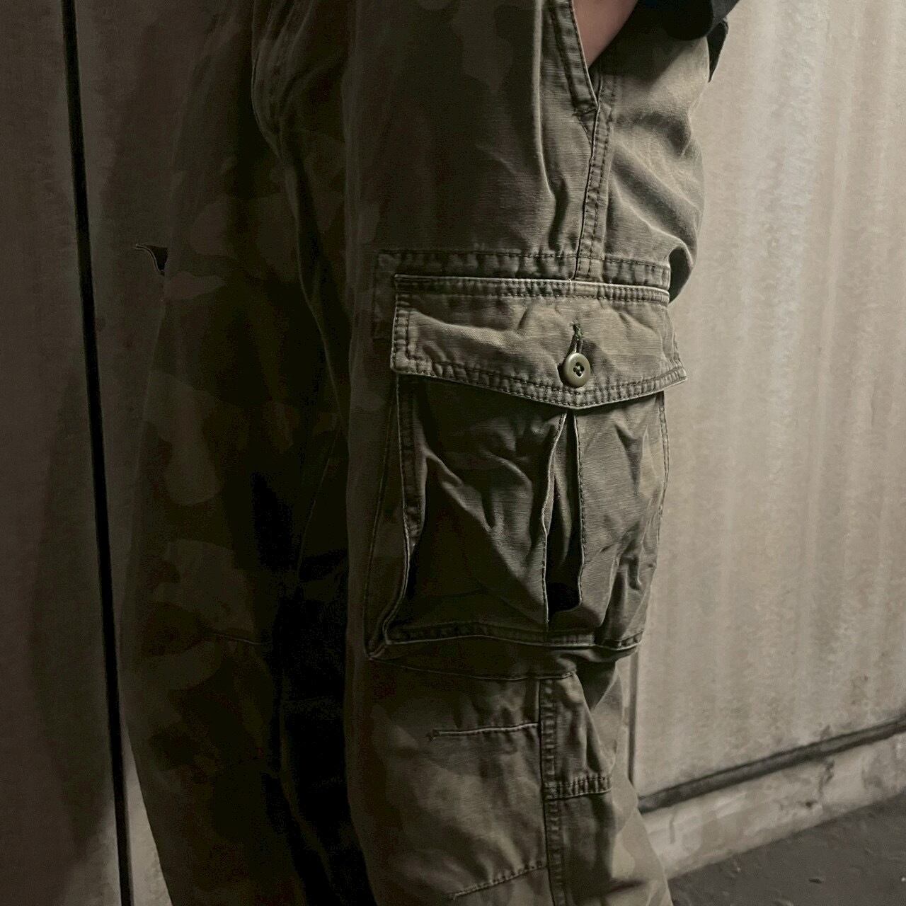 無骨なミリタリー要素をモードに落とし込んだ、ヴィンテージカモ柄カーゴパンツ。