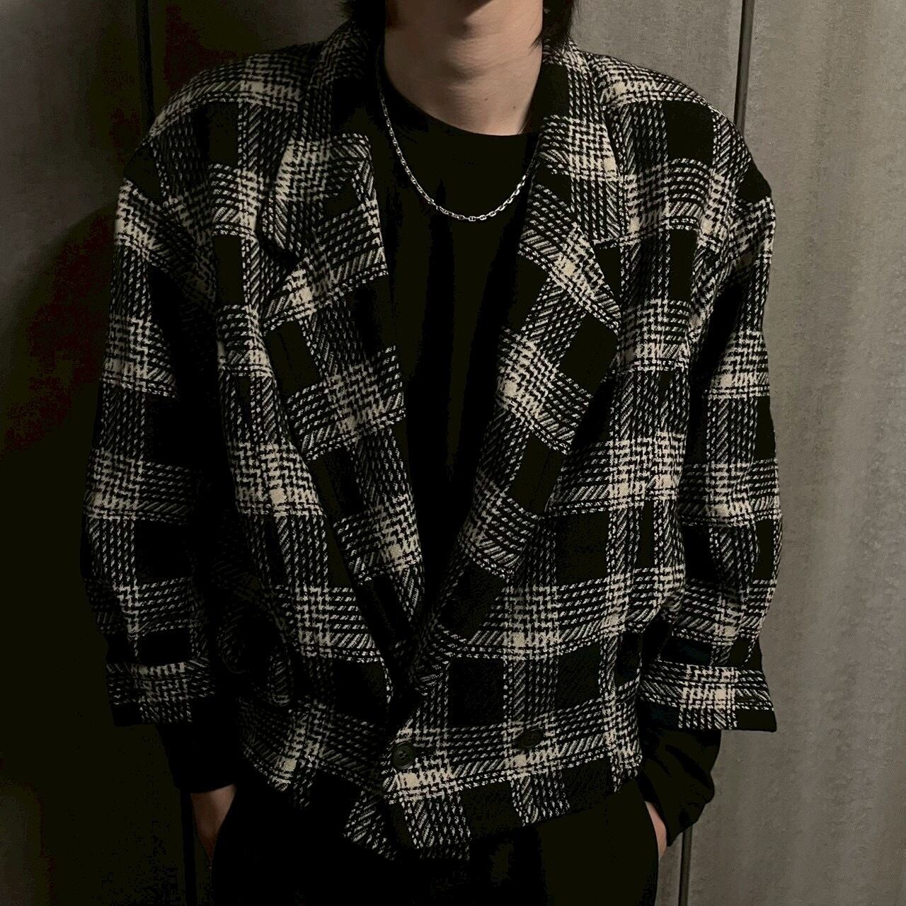 〖Vintage〗 Glen Check Cropped Double-Breasted Jacket