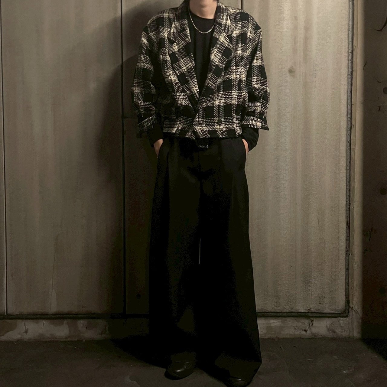 短丈&ドロップショルダーのバランスが絶妙で、ワイドパンツやスラックスと合わせるだけでスタイルが完成。