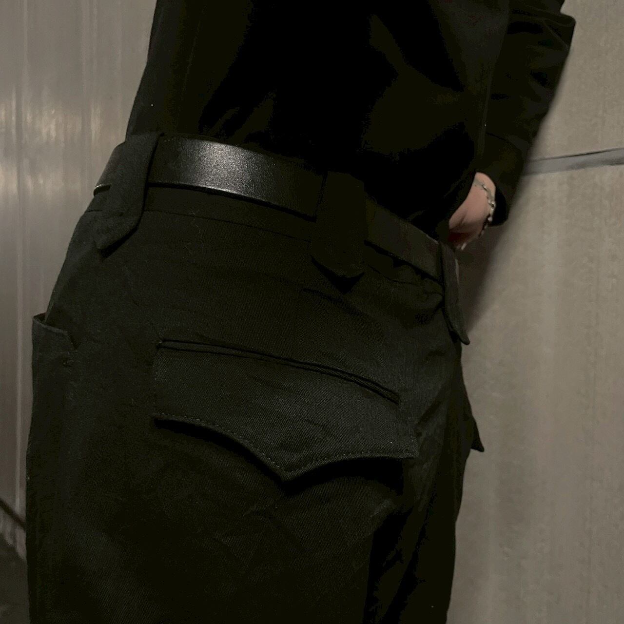 上品な黒のトーンと、バックのフラップポケットが程よいアクセントになり、ドレッシーにもモードにも振れる一本。