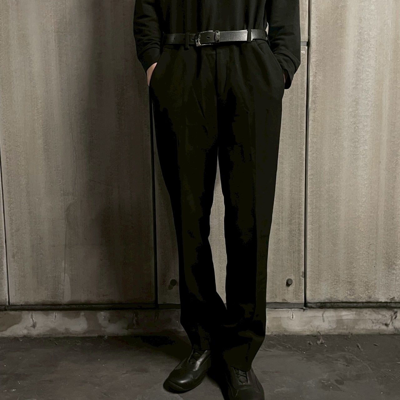 深めのツータックからゆるやかに落ちる美しいシルエットは、90s アルマーニ特有のムードを漂わせながらも、現代的に着用できる一本です。