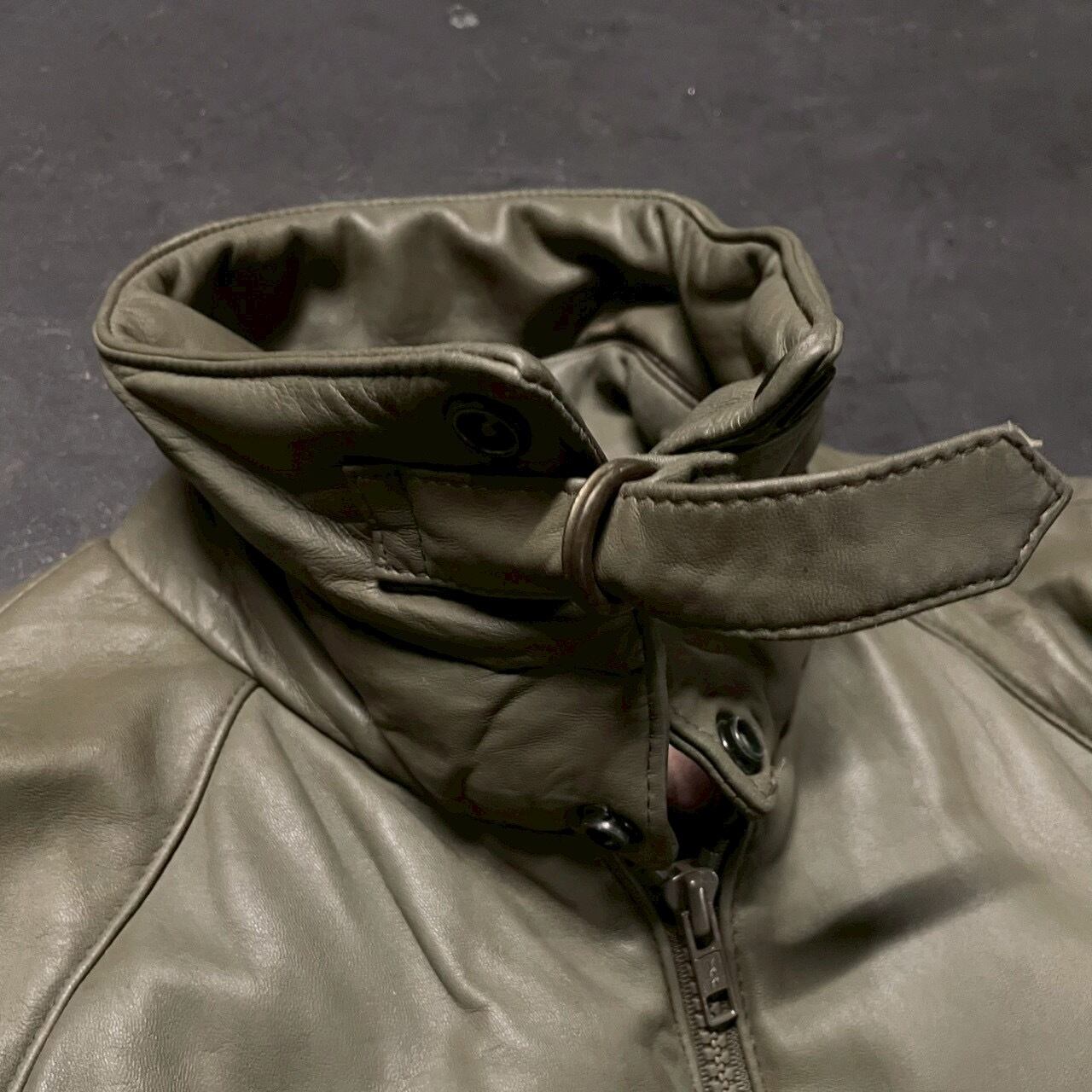 希少なカーキトーンのレザーを使用した存在感抜群の一着。