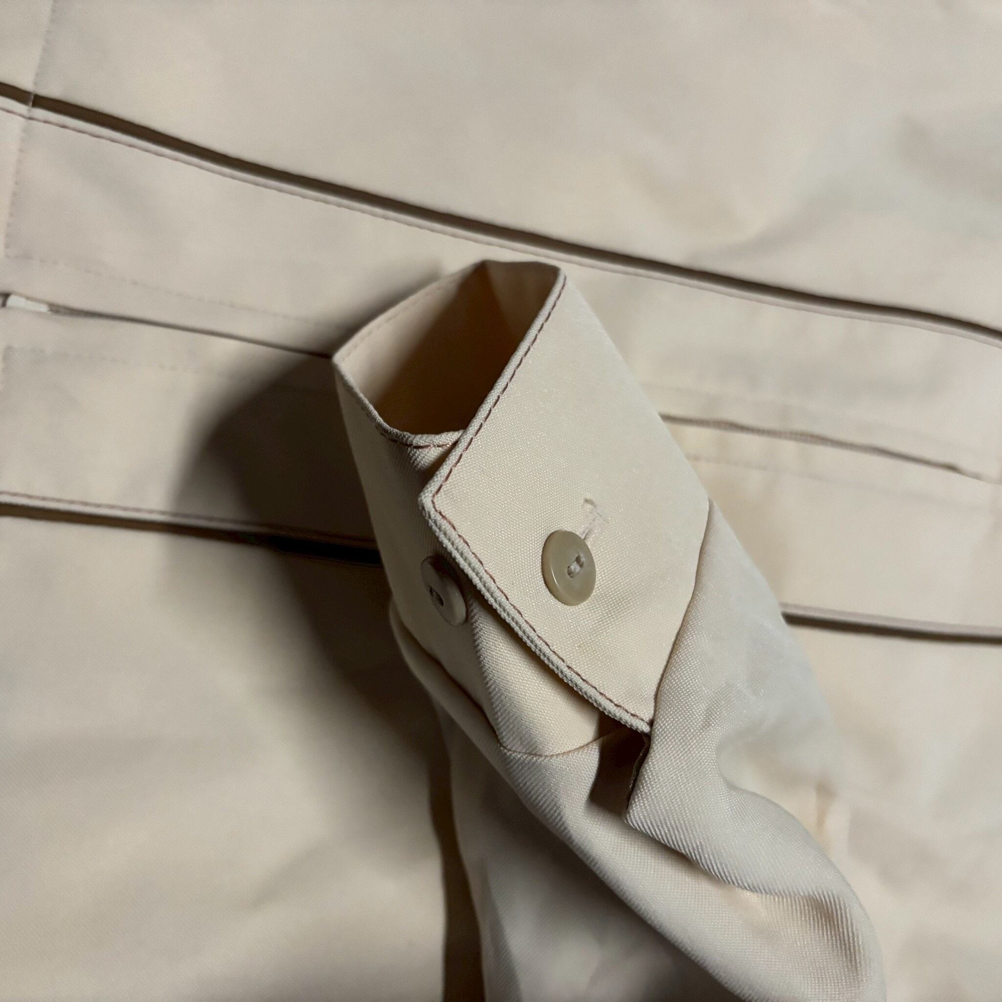 淡いクリームカラーに対して、ブラウンのステッチラインが控えめなアクセントを生み、無駄を削いだ上品な雰囲気を演出。