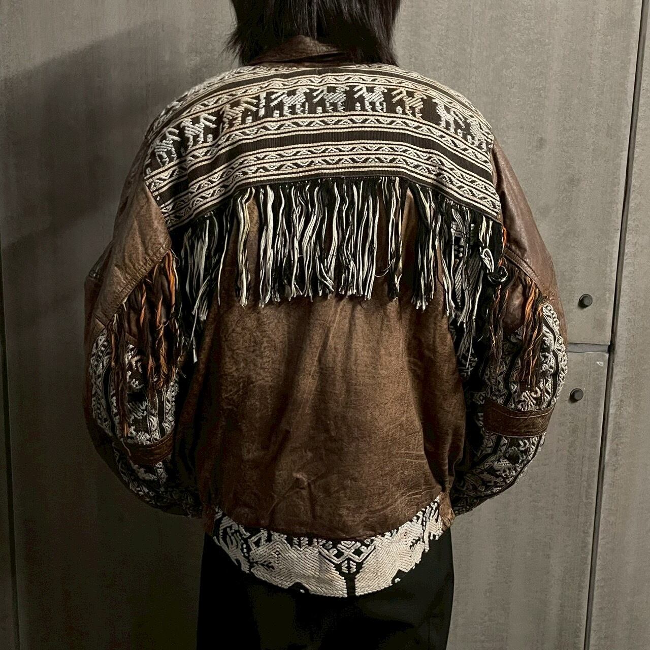 〖vintage〗90s Ethnic Fringe Leather Jacket
