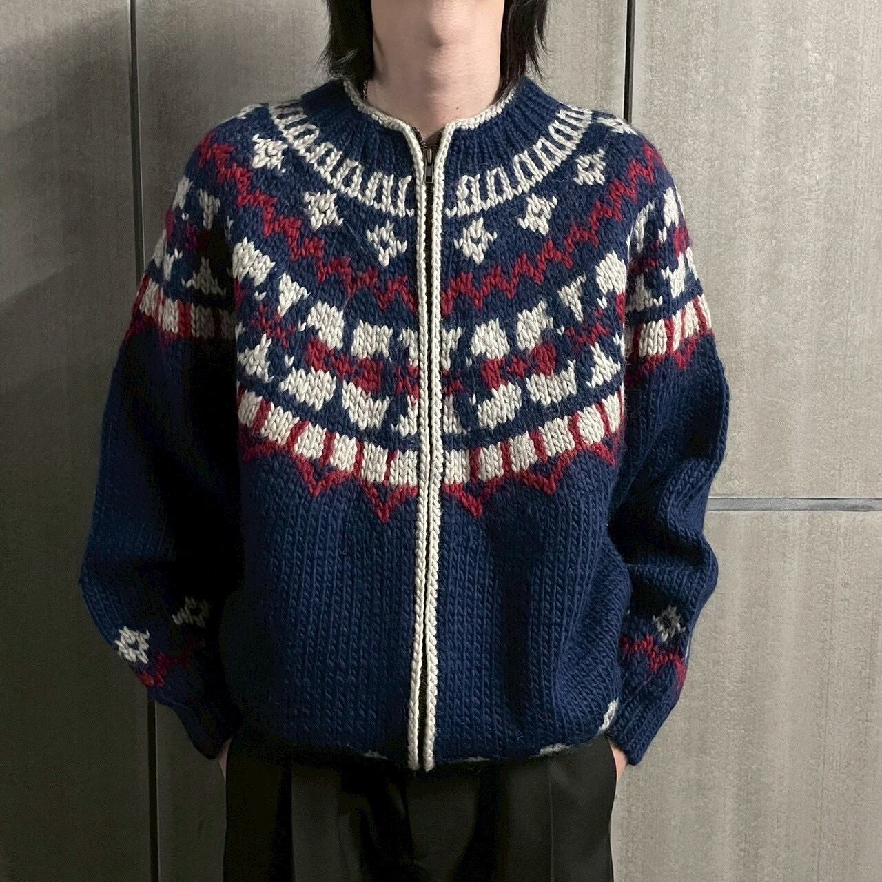 1980年代ヴィンテージのノルディック柄ジップアップニットブルゾン。