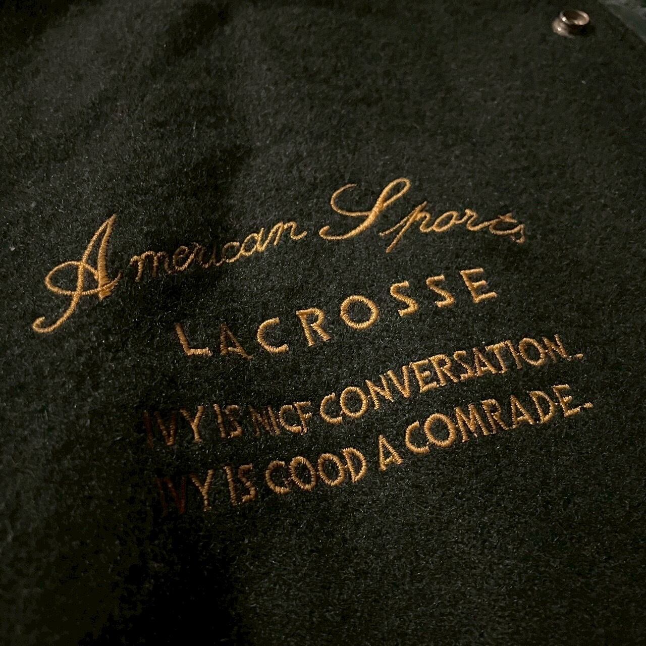 深みのあるアイビーグリーンのウールボディに、襟元と裾リブにあしらわれたマスタードイエローのラインが映える、クラシカルなカレッジスタイルを体現した一着です。