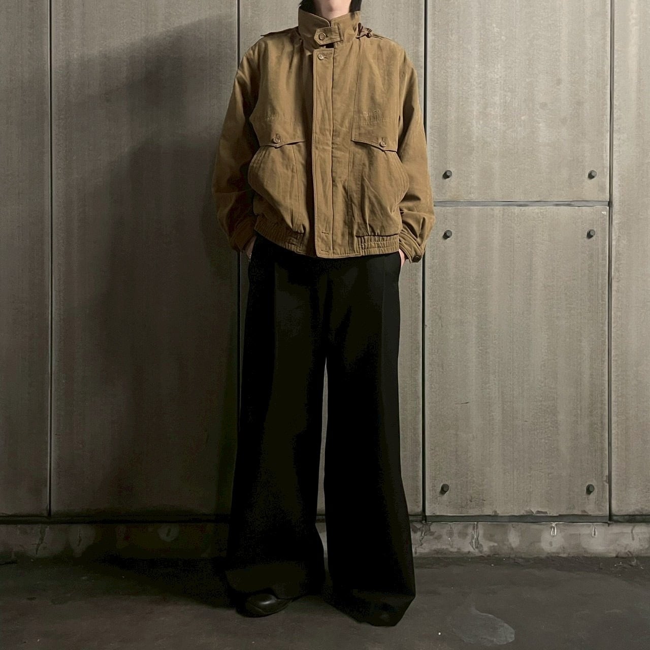 程よくエイジングされたキャメルブラウンが渋みを引き立てる、スタンドカラー仕様のハリントンジャケット。