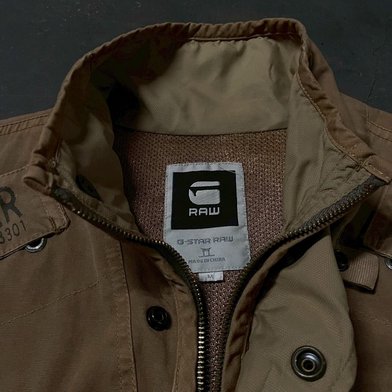ジースターロウによる、フィールドテイスト溢れるマルチポケットジャケット。サンドベージュの色味と立体裁断による無骨なシルエットが特徴的な一着です。斜めに走るフロントポケットや、ボタン留め付きのマチ付きポケットなど、ギミック感のあるディテールが満載。左肩にはブランドロゴ入りのパッチを配置し、右胸には「G-STAR 3301」ステンシルが施されています。フロントはジップとスナップボタンの比翼仕様で防風性も確保。フィールド×テックの文脈を感じさせるユーティリティアウターです