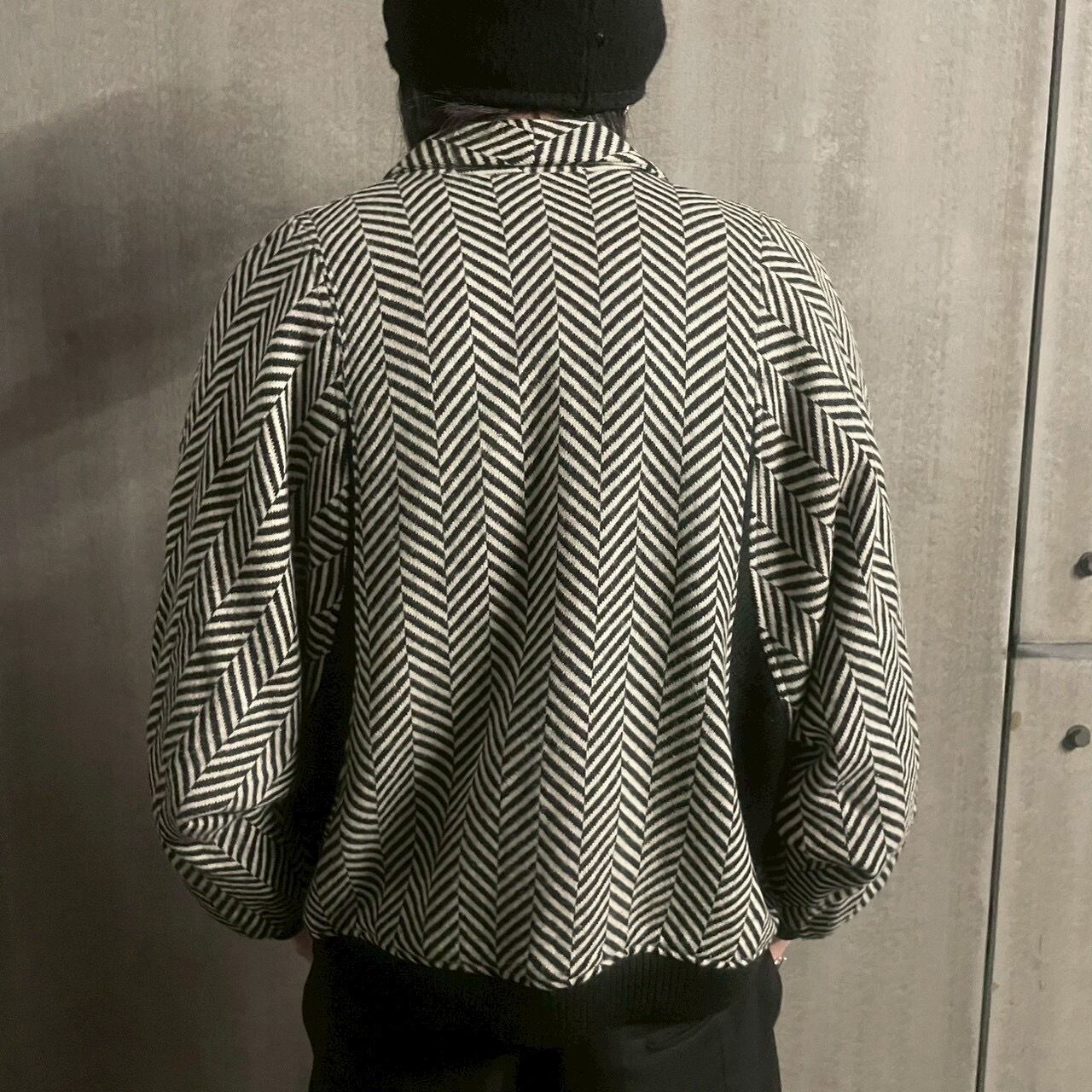 緩やかに身体を包み込むドレープ感と、目を惹くヘリンボーン柄が特徴のショールカラーブルゾン。柔らかくしなやかなウールライクな素材により、着用時のシルエットが美しく、袖口と裾にはリブを配すことで、ボリュームある身頃とのメリハリを演出。ボタンのディテールも効いており、ジャケットとブルゾンの中間のようなニュアンスを持つ一着です。ヴィンテージライクながらも都会的な印象を与える、装飾を削ぎ落としたミニマルなデザインが魅力。
