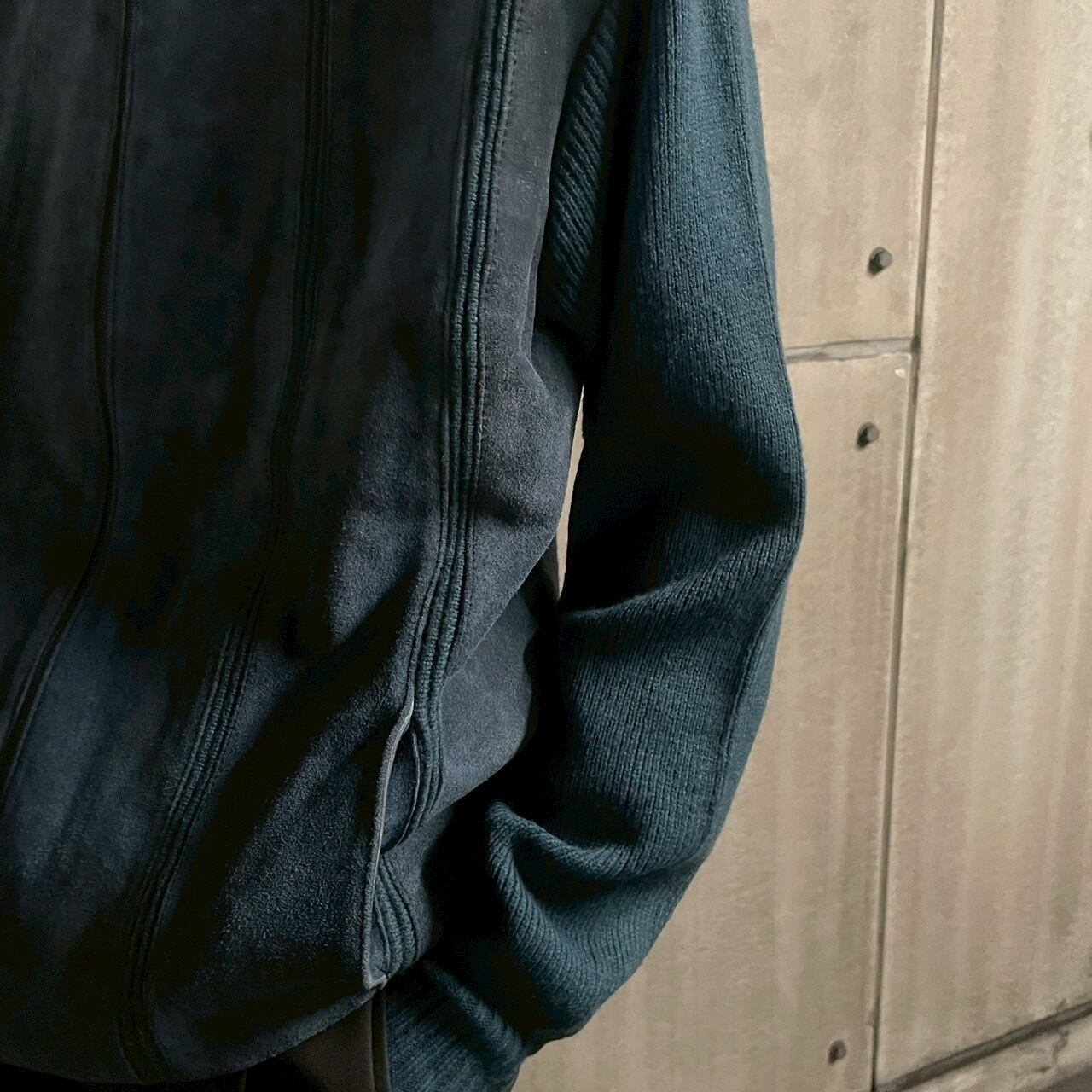 1990年代らしい素材切り替えが印象的なスウェード×ニットブルゾン。
