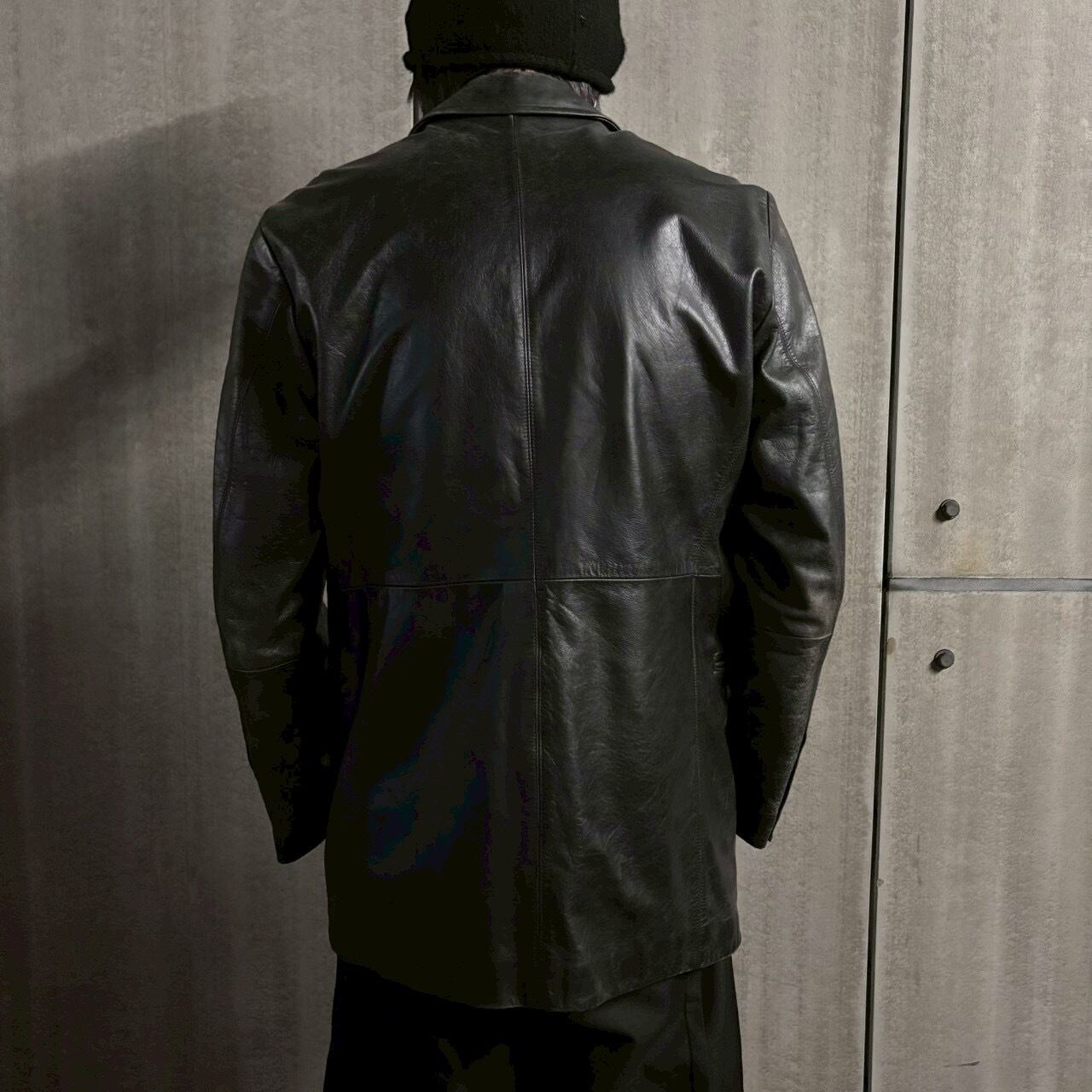 レザー特有の艶とシワ感が、クラシックなテーラード構造に色気を与え、ジャケットでありながらアウターとしての存在感も兼ね備えた一着です。