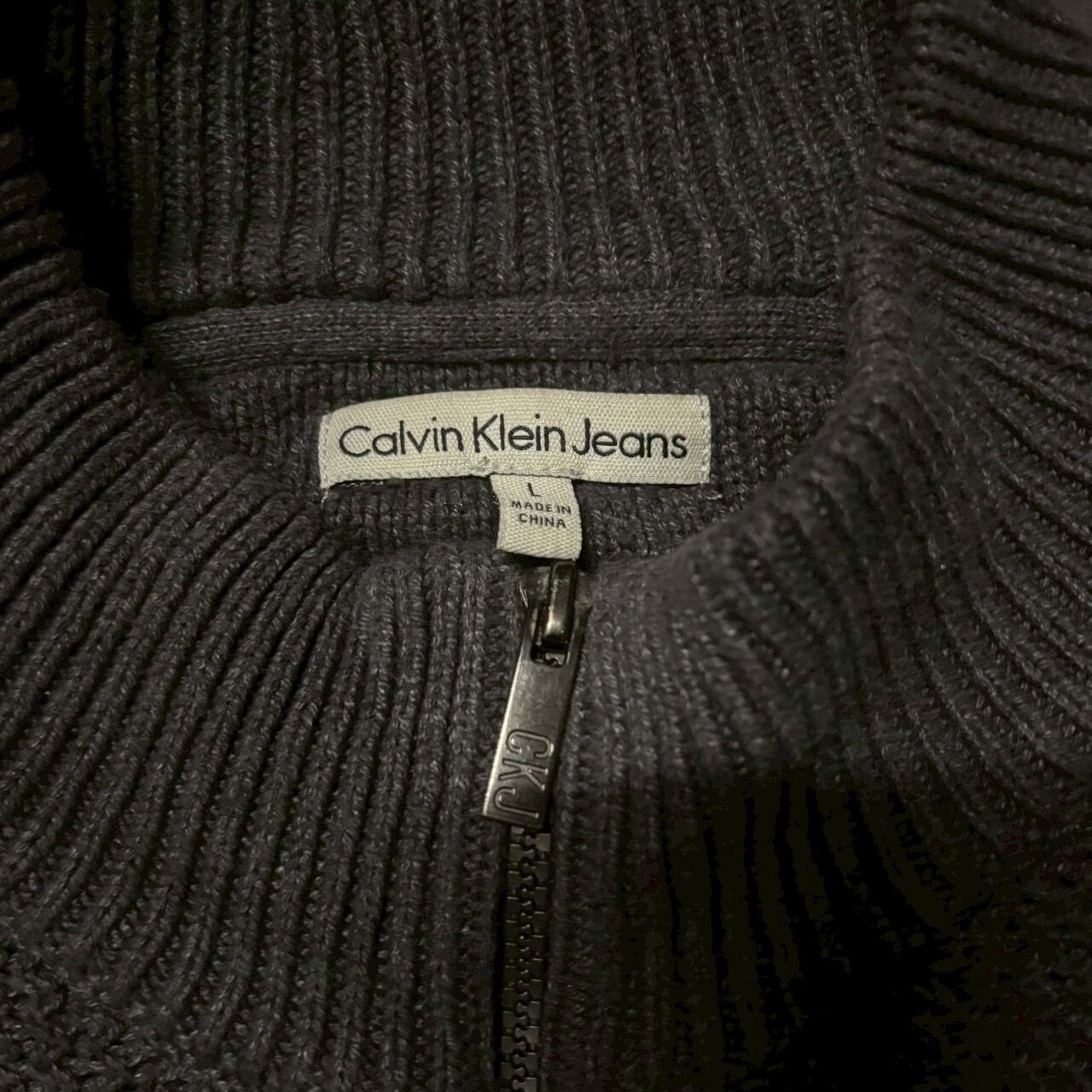 Calvin Klein Jeansによるハーフジップ仕様のリブニットセーター。