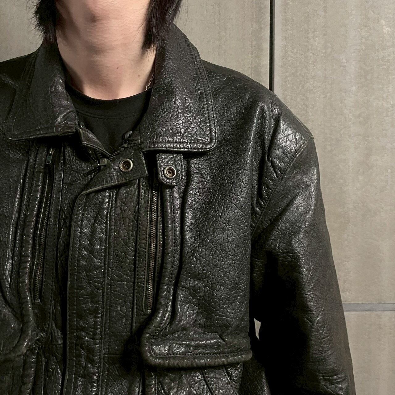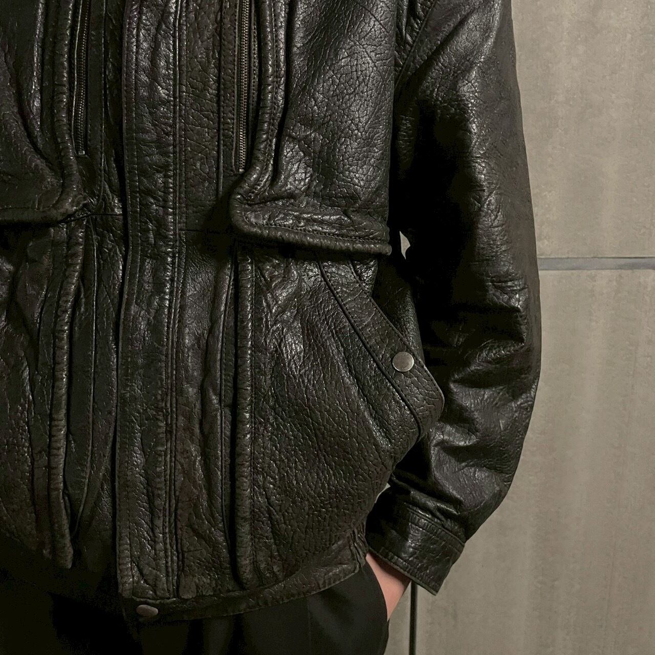 〖vintage〗90s Sheepskin Gimmick Zip Leather Jacket