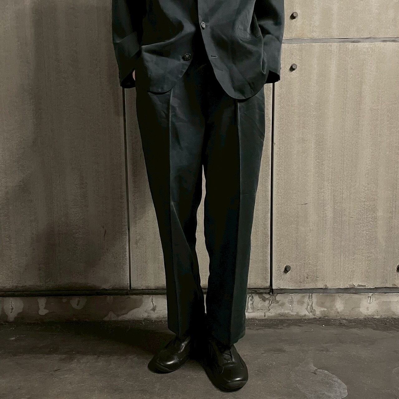シックなダークトーンで統一された、ジャケットとスラックスのセットアップ。