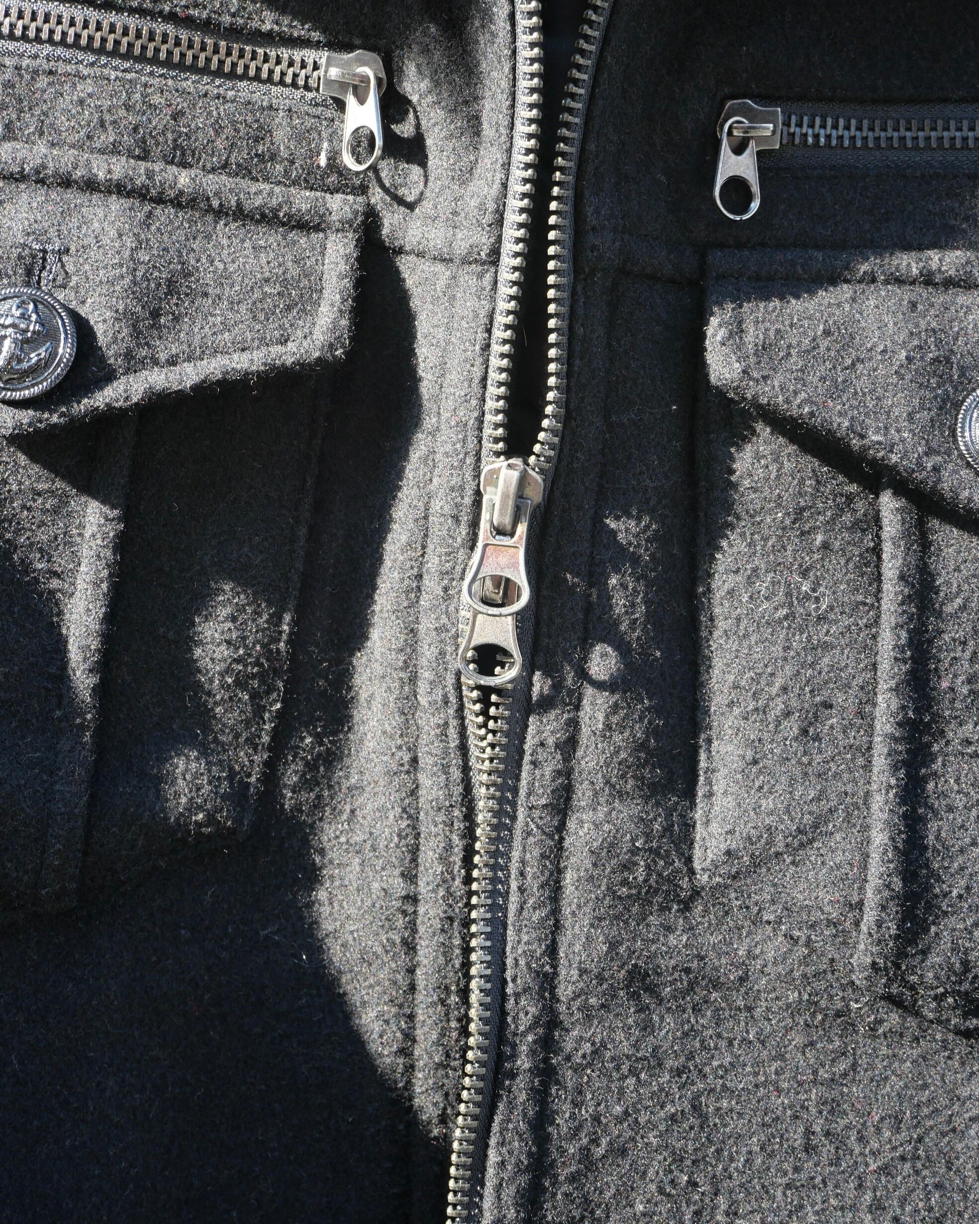 〖vintage〗Wool Black Fur Collar Double Zip Blouson
