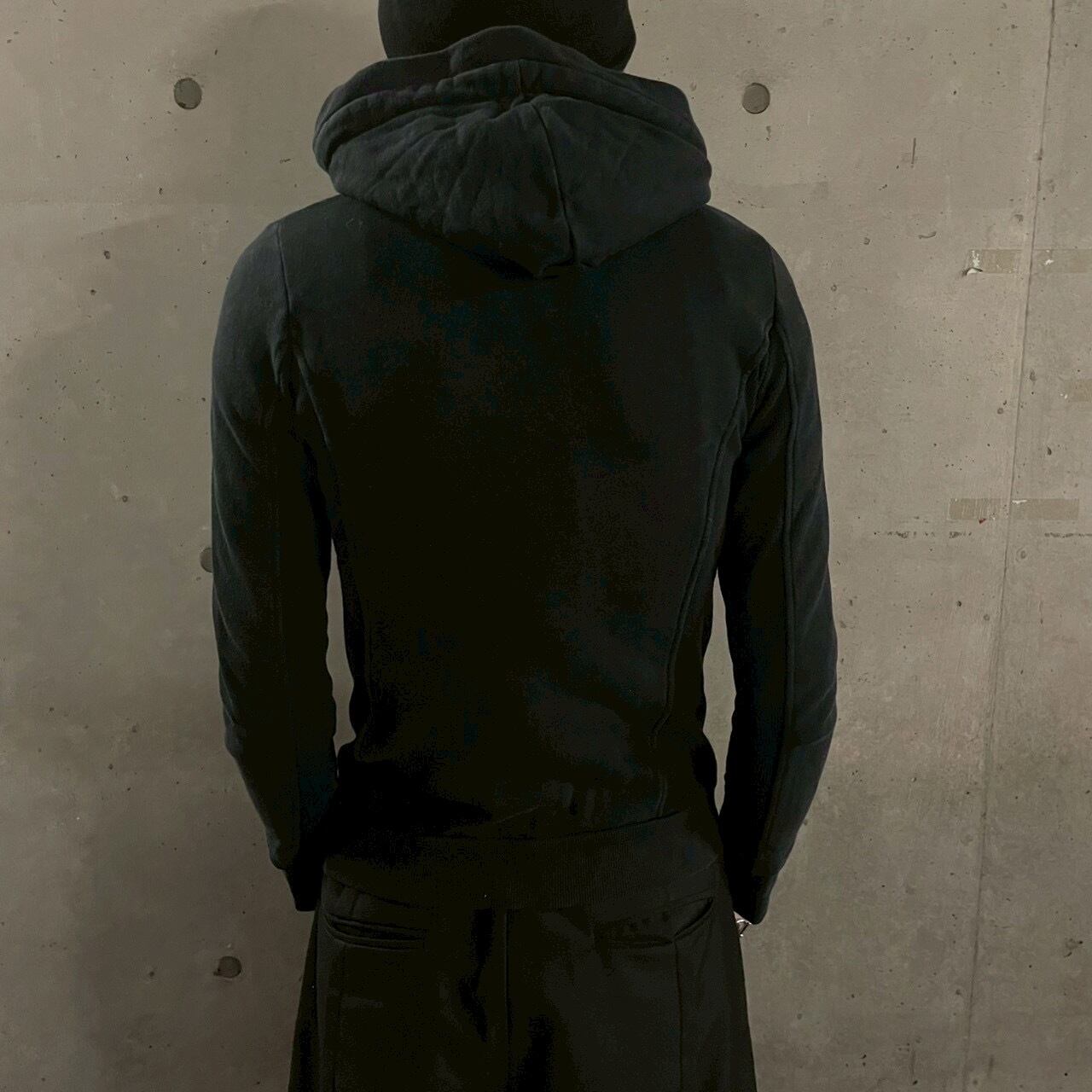 2000年代らしいタイトなシルエットが特徴の、レイヤード仕様ダブルジップフーディ。