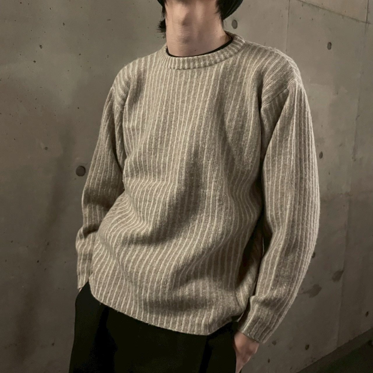 ミドルゲージならではの程よい厚みがあり、インナー・一枚着どちらでも成立する汎用性の高いニットです。
