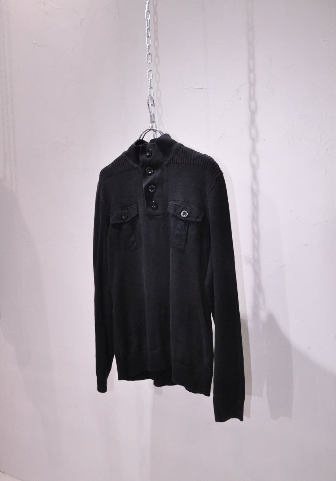 (vintage)Half button double pocket cotton knit