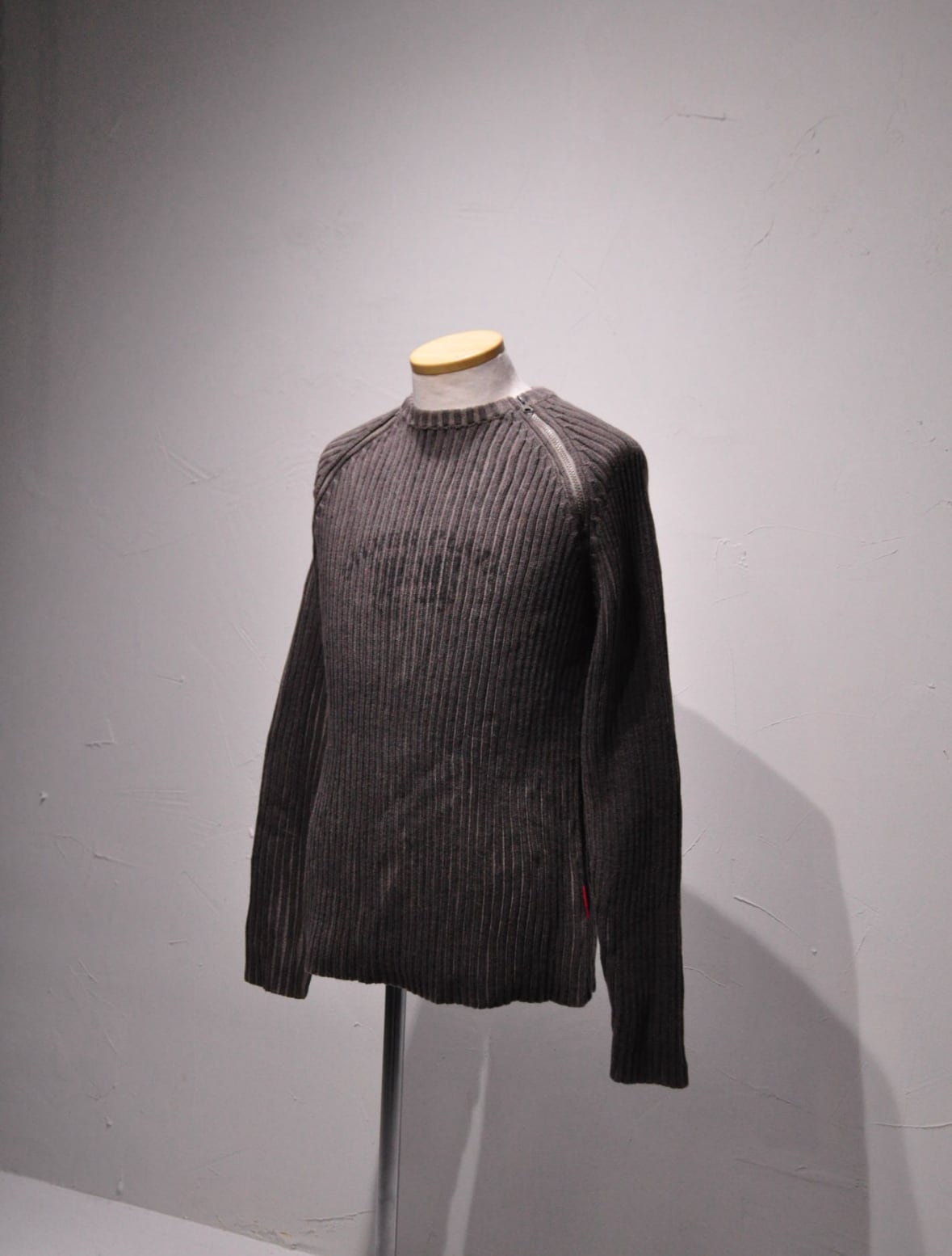 〈vintage〉90s Shoulder zip rib knit