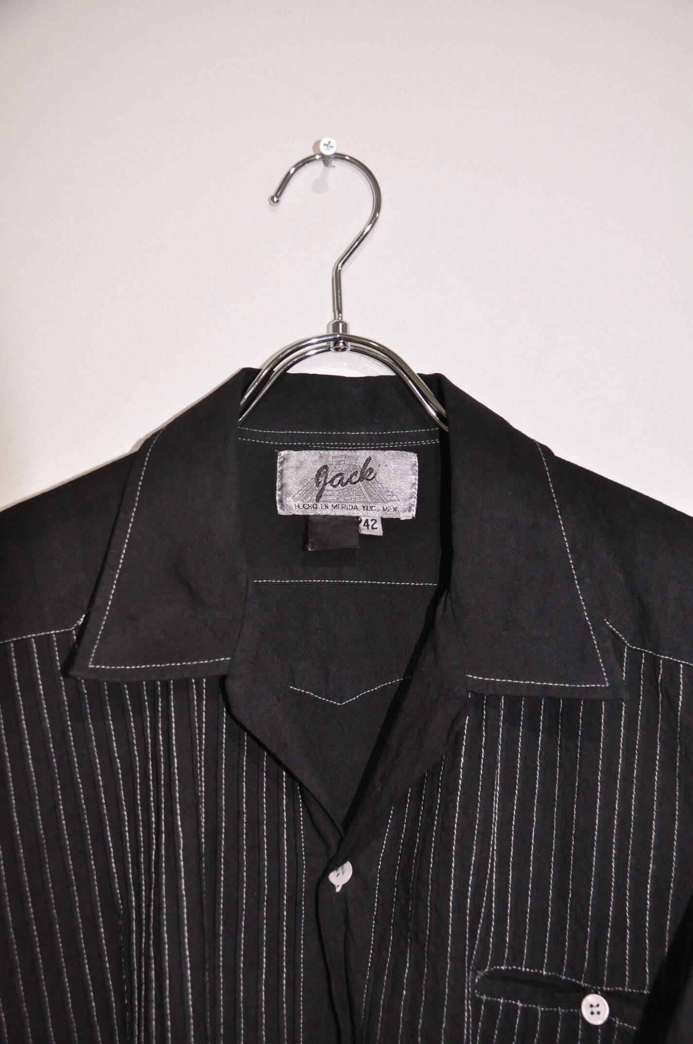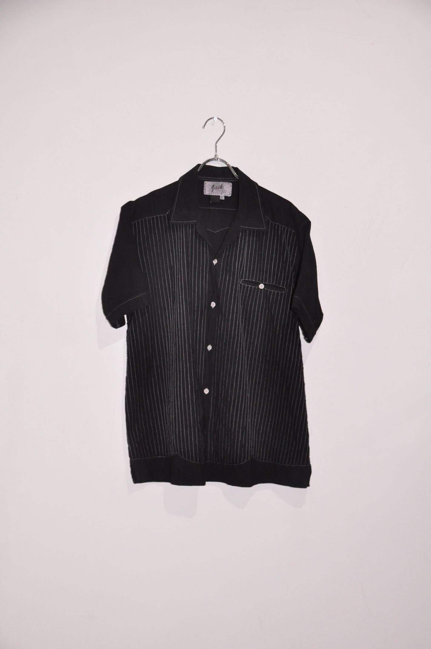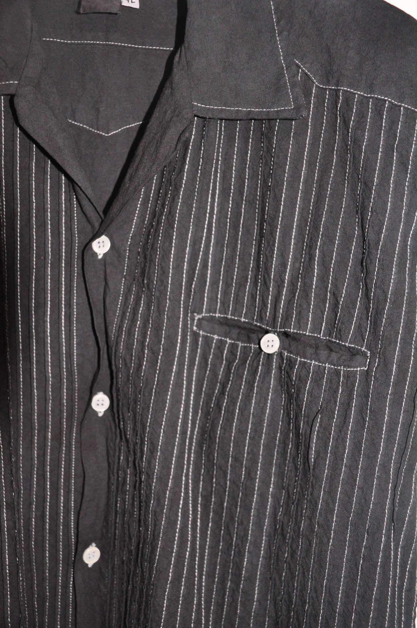 〈80s gach〉Overdye Striped Open-Collar Shiet